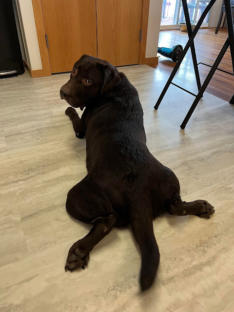 So here's a photo of my dog doing the sploot on the floor.